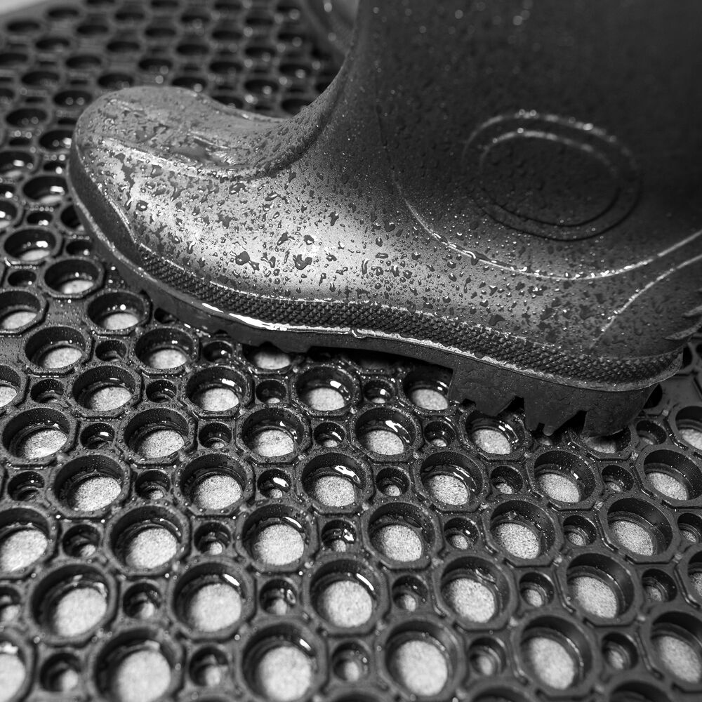 Onze antislipmatten voorkomen uitglijden, onze anti-vermoeidheidsmatten verlichten langdurig staan. Zo werk je prettiger en veiliger, elke dag opnieuw.